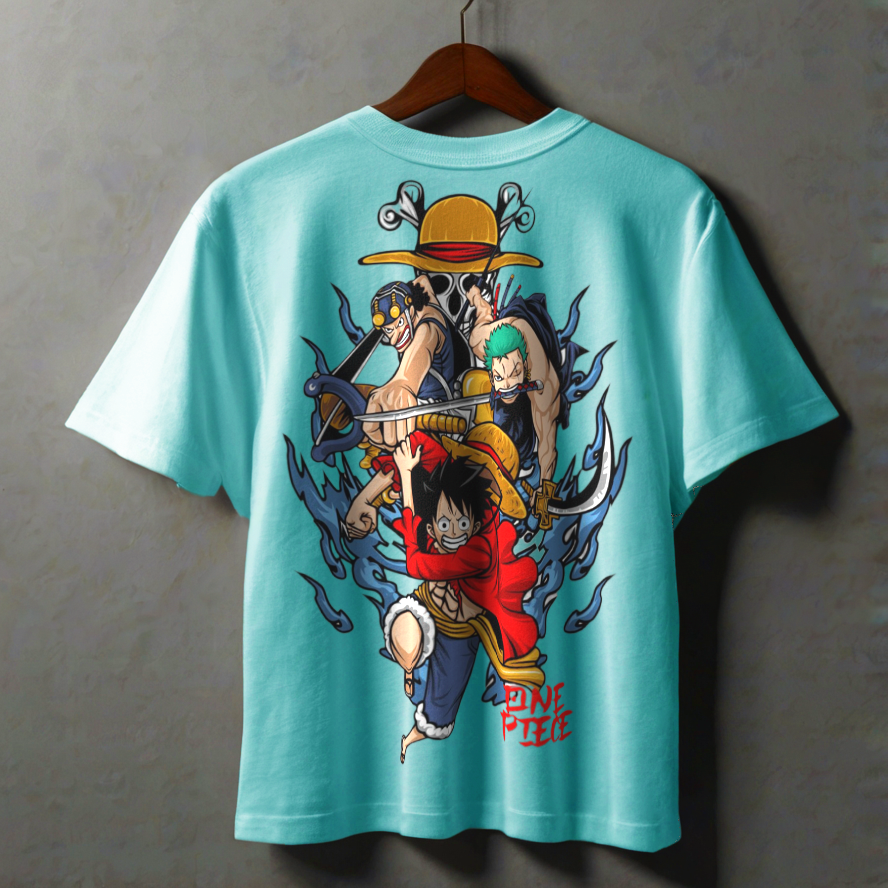 With its iconic design, soft fabric, and vibrant cyan color, the One Piece Oversized Tee is your ticket to standing out like the Straw Hat Pirates. Set sail with Luffy and make your mark on the world with this must-have tee!